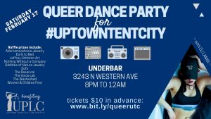 Queer Dance Party to Benefit Uptown People’s Law Center! Posted on February 9, 2018 by Andy Thayer — Leave a reply Join us the evening of Saturday, February 17th to support Uptown People’s Law Center as it fights to defend homeless people’s rights in Chicago!