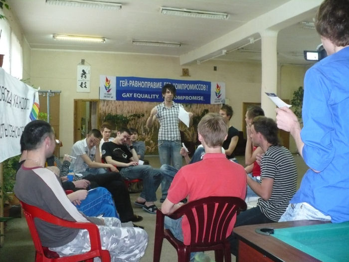 Doing so amidst state repression and limited openings for democratic organizing of any kind is a real trick. "We want to minimize the negative consequences" to the Pride participants, said Alekseev. Today's part of the conference will be aimed at carefully organizing and training ourselves for tomorrow's action so that we get "maximum exposure of mass media and minimum consequences to the participants."