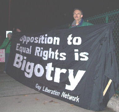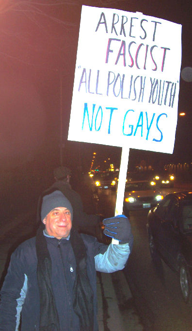Speakers at the protest noted that Kaczynski not only visited the notoriously homophobic George Bush the previous day, but was scheduled to be feted by the allegedly pro-gay Mayor Richard M. Daley on Saturday. While Daley occasionally makes pro-gay comments, and throws some bucks to the new gay community center on Halsted Street, millions upon millions of city tax dollars each year go to private, religious organizations like the Salvation Army and Catholic Charities which refuse to give equal benefits to their LGBT employees.